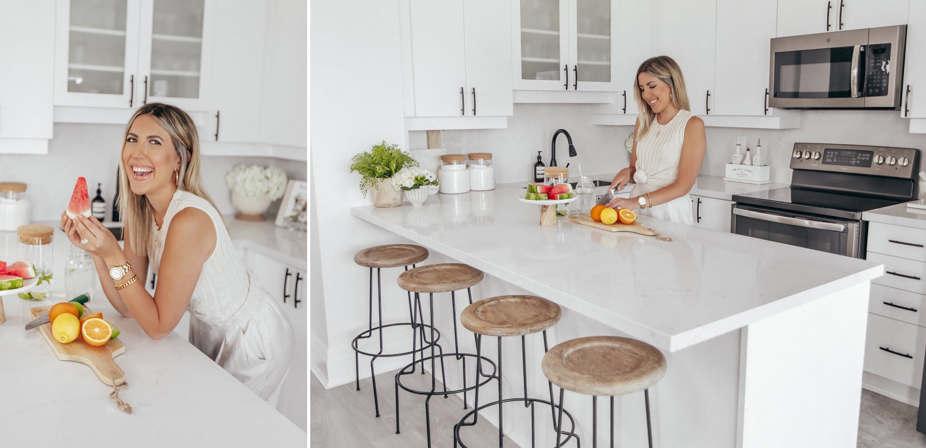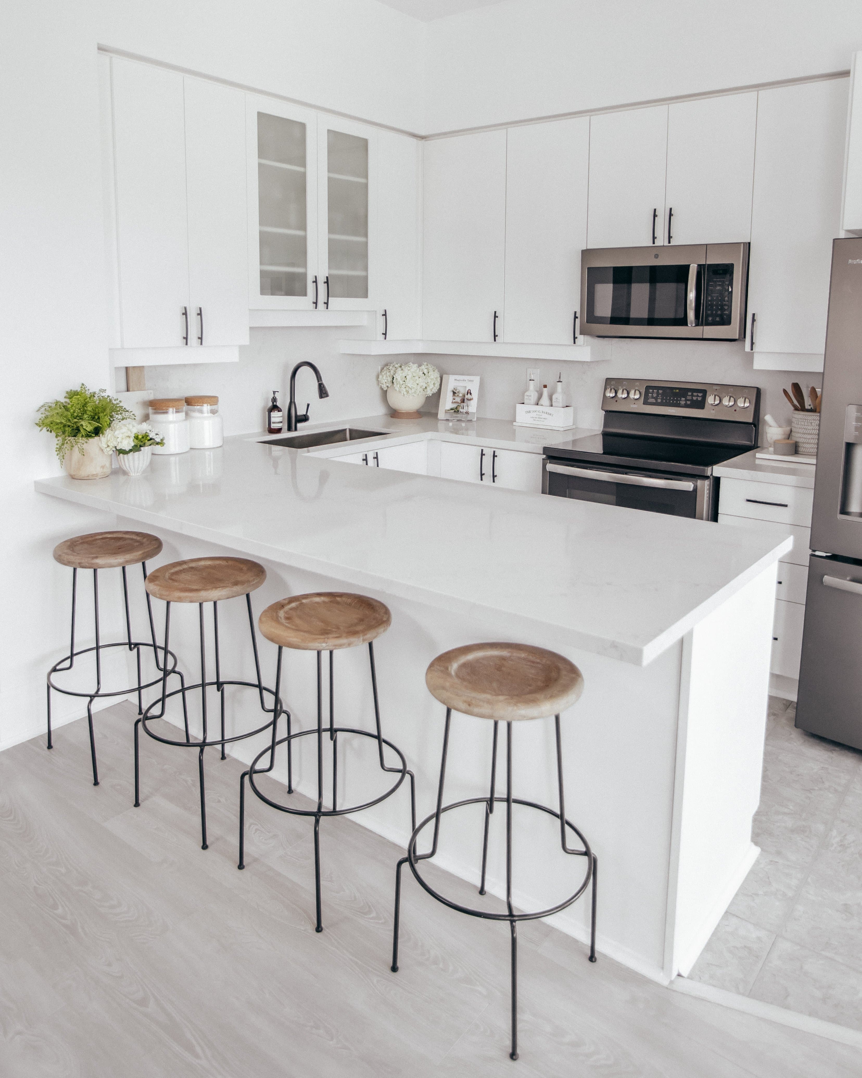 Kitchens are the heart of the home. Unfortunately, they are often one of the most expensive rooms to renovate. That being said, a budget friendly kitchen renovation is possible. This year HanStone Canada had the pleasure of partnering with Toronto based lifestyle blogger Steph Sterjovski Jolly for her kitchen makeover and countertop refresh project. Instead of doing a complete kitchen overhaul, Steph worked with her existing kitchen layout and cabinets. While her cabinets were already painted white, this is an easy design tip if you want to freshen up your space- paint existing cabinets in a lighter hue. Steph’s kitchen makeover proves that you don’t have to do a complete kitchen overhaul to make a statement. Sometimes all you need to do is swap out your kitchen countertops and backsplash.