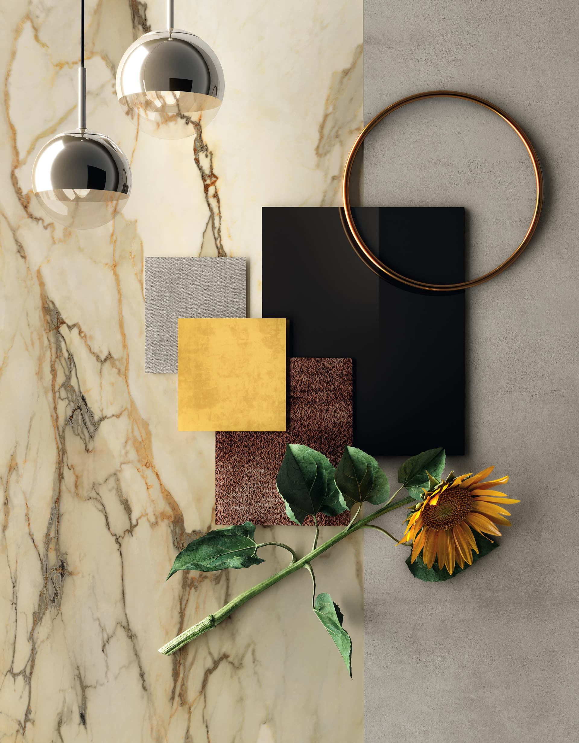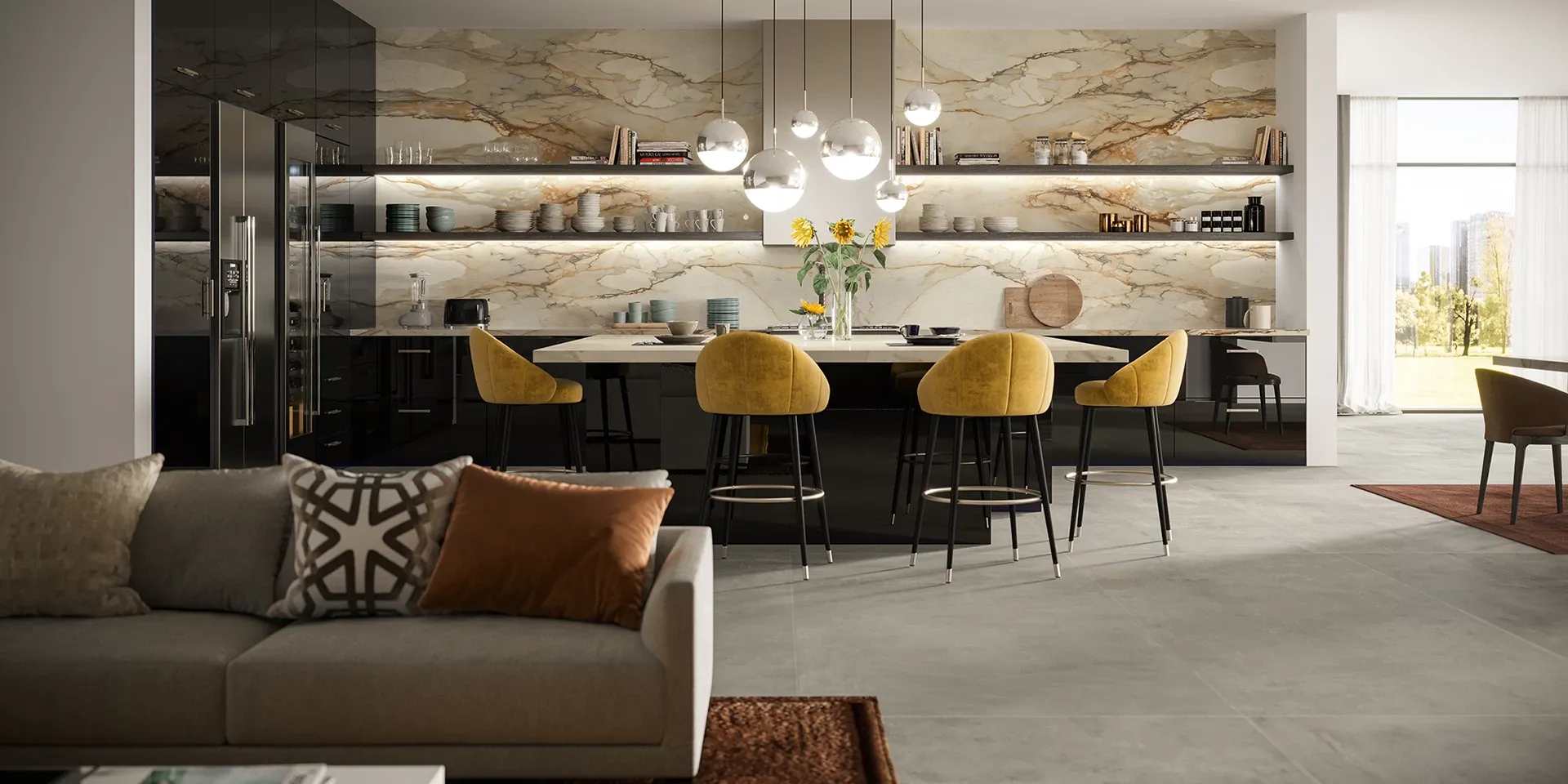 An elegant ivory canvas brought to life by bold veining in soft greys, warm beiges, and delicate blush tones. Its layered movement and tonal depth bring a refined sense of luxury and character to any space.