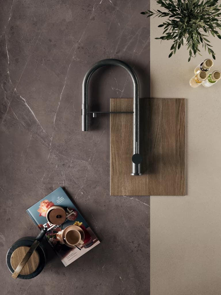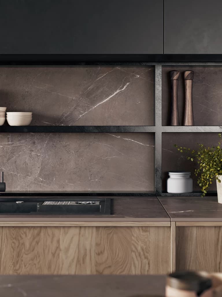A rich, earthy brown base layered with soft veining and natural movement. Warm undertones and subtle light accents create a surface that feels grounded, sophisticated, and effortlessly timeless.