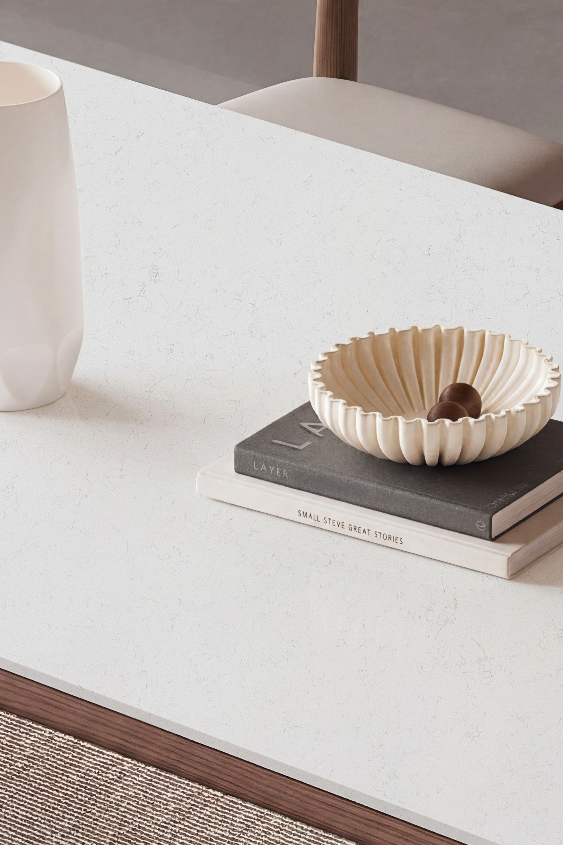 Revie’s soft, airy white tone is enriched with delicate light grey veining that flows gently across the surface. This subtle movement creates a sense of serene, quiet elegance, offering a clean and refined foundation that pairs effortlessly with both warm and contemporary design palettes.
